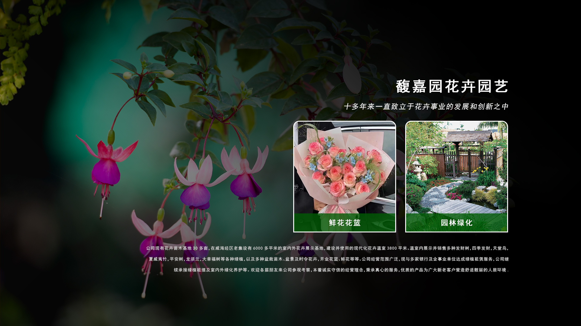 威海市馥嘉園花卉園藝有限公司成立于2009年,十多年來一直致立于花卉事業(yè)的發(fā)展和創(chuàng)新之中。公司現(xiàn)有花卉苗木基地30多畝,在威海經(jīng)區(qū)老集設(shè)有6000多平米的室內(nèi)外花卉展示基地,建設(shè)并使用的現(xiàn)代化花卉溫室3800平米。溫室內(nèi)展示并銷售多種發(fā)財樹,四季發(fā)財,天堂鳥,夏威夷竹,平安樹,龍須蘭,大幸福樹等各種綠植,以及多種盆栽苗木、盆景及時令花卉,開業(yè)花籃、鮮花等等。公司經(jīng)營范圍廣泛,現(xiàn)與多家銀行及企事業(yè)單位達(dá)成綠植租賃服務(wù),公司繼續(xù)承接綠植租擺及室內(nèi)外綠化養(yǎng)護(hù)等。